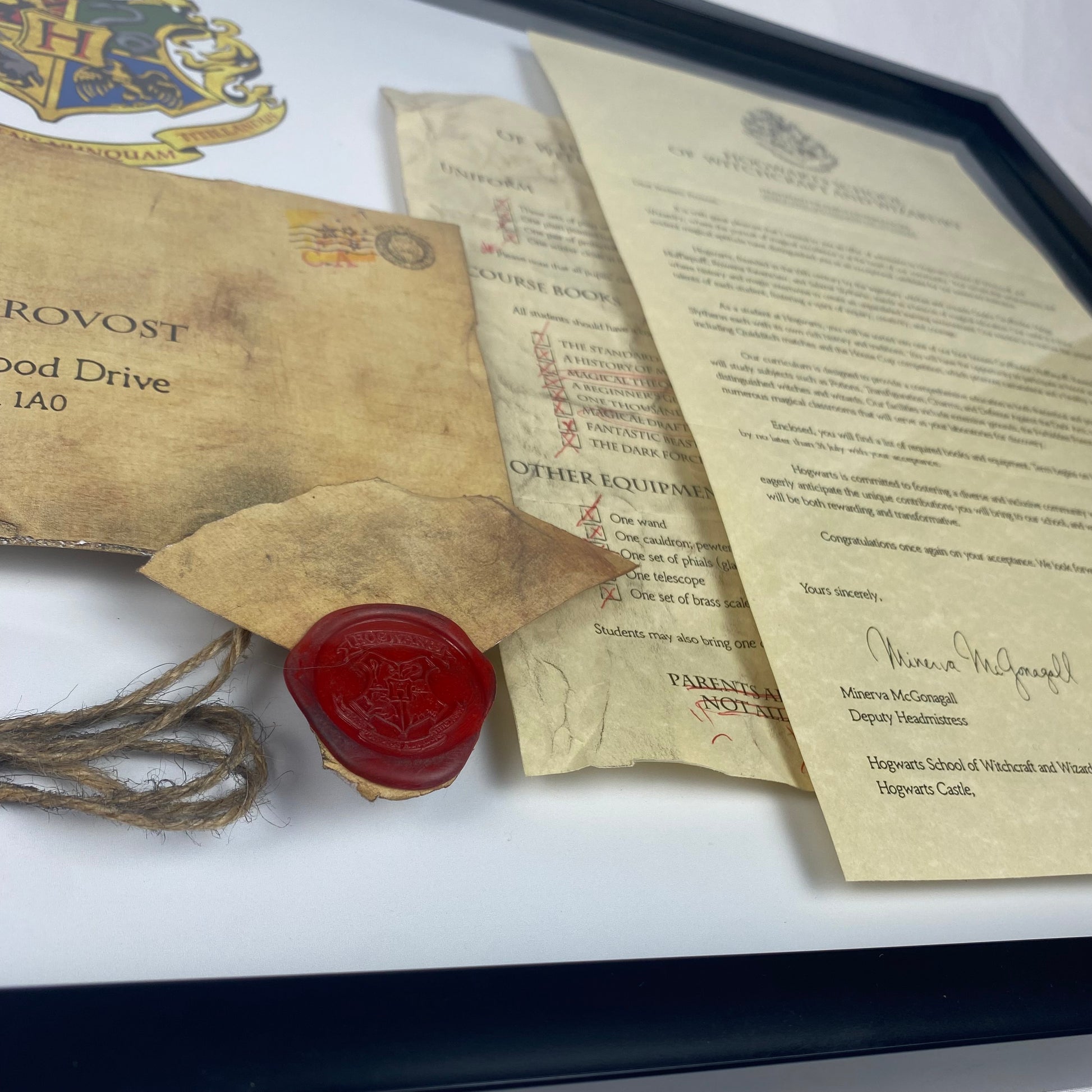 Bring the magic of the Wizarding World home with this stunning Hogwarts Acceptance Letter Framed Display. Inspired by the iconic moment every witch or wizard dreams of, this piece captures the wonder of being invited to attend Hogwarts School of Witchcraft and Wizardry. Featuring a beautifully aged acceptance letter, official supply list, weathered envelope and the famous Hogwarts seal, all elegantly framed for display. Whether you’re a lifelong Harry Potter fan or a collector of magical memorabilia, this display is a timeless tribute to the spellbinding world. A perfect centerpiece for any magical collection or enchanted space.
